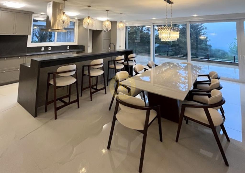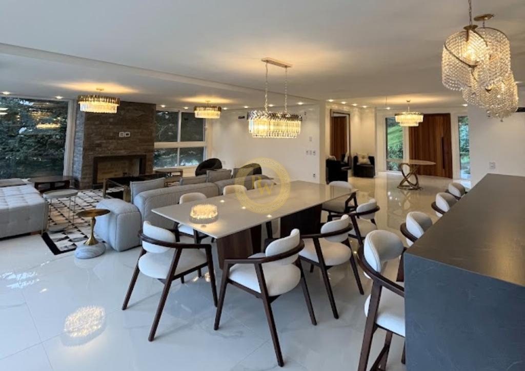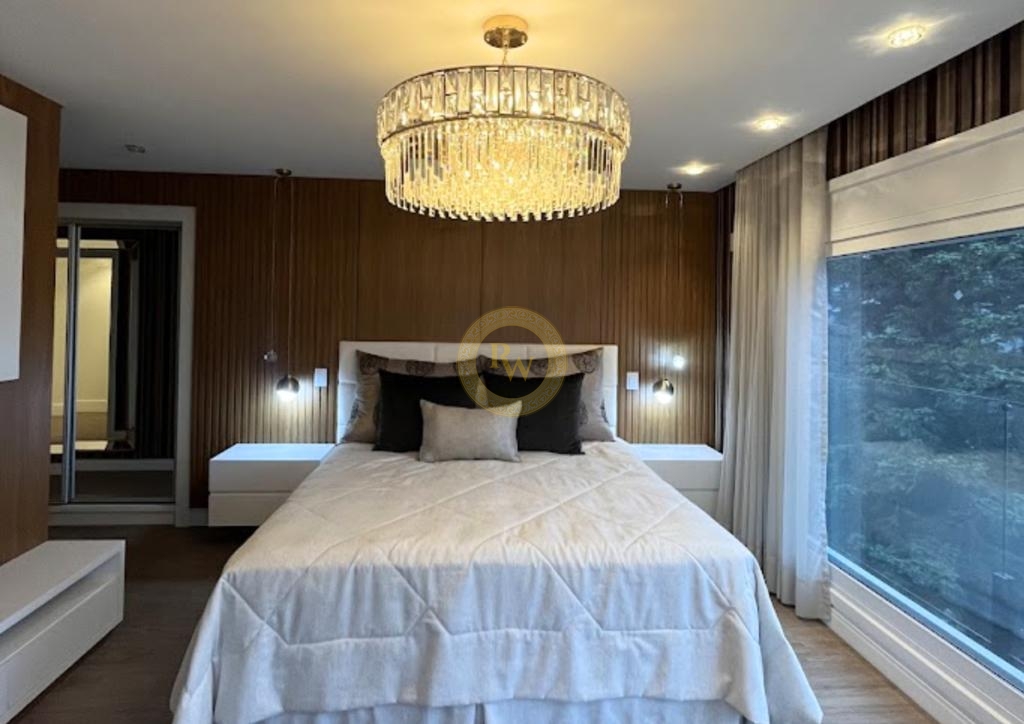 Dormitórios: 5 suítes, sendo 1 suíte no pavimento térreo, 3 suítes no segundo pavimento e 1 suíte no subsolo.