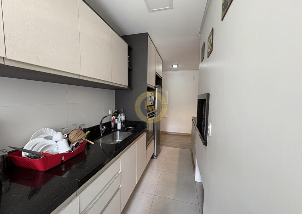 Salão de festas, zeladoria, academia, piscina aquecida, sala de jogos, chimarródromo e porteiro.