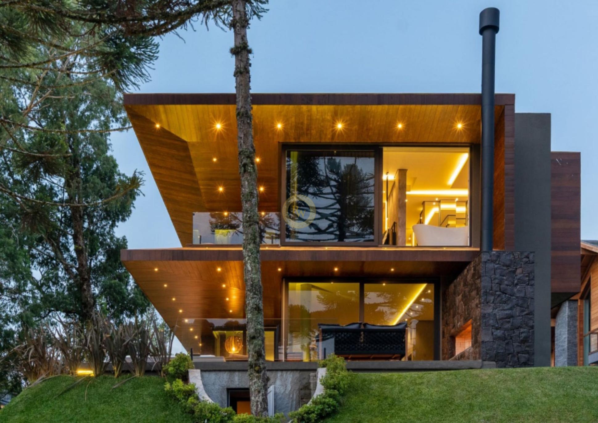 Revestimento externo com madeira nobre;